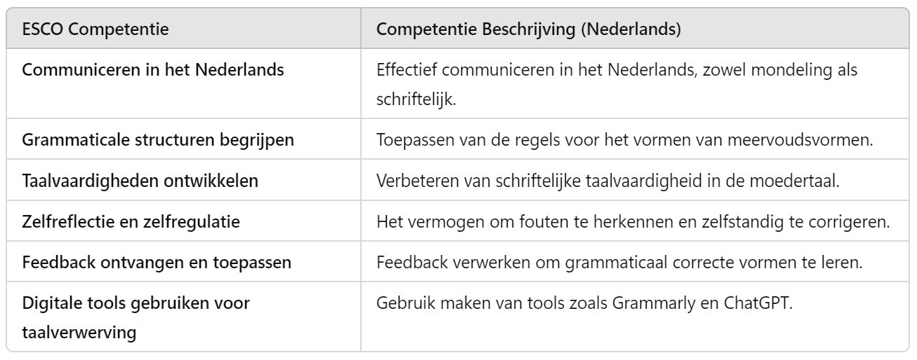 Het correct gebruiken van meervoudsvormen maakt jouw Nederlands duidelijker en professioneler. Het helpt je om effectief te communiceren over meerdere objecten, personen of concepten, zowel in dagelijkse gesprekken als in formele situaties. Na deze module kun je met gemak schrijven en spreken over onderwerpen waarbij meervoudsvormen essentieel zijn, wat jouw taalgebruik vloeiender en preciezer maakt.