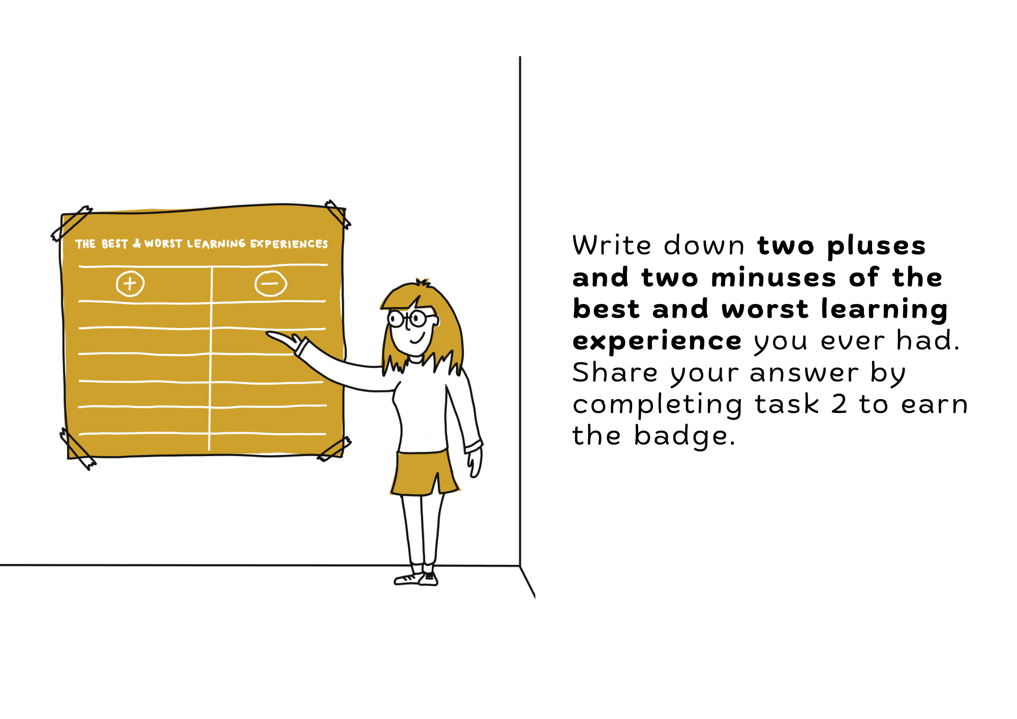 Write down two pluses and two minuses of the best and worst learning experience you ever had. Share your answer.