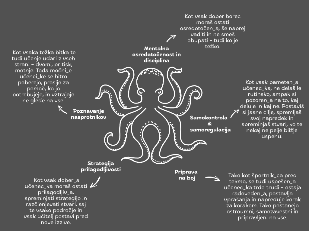 Na učenje glejte kot na borilne veščine. 💥 Ja, res! Spodnja ilustracija prikazuje, kako izgradnja učnih veščin pomaga mladim pri čustveni, duševni in socialni rasti. Kot mladinski delavec lahko s svojo podporo in spodbudo veliko spremenite - učencem pomagate, da ostanejo osredotočeni, pridobijo samozavest in rastejo skozi vsak izziv.